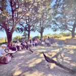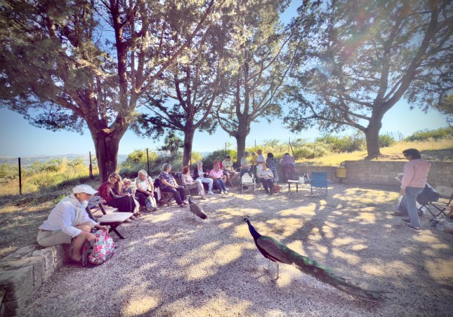 Schatten der Zypressen, umgeben vom Ruf der balzenden Pfauen, machten wir es uns gemütlich.Ob auf den Steinmäuerchen, Klapp