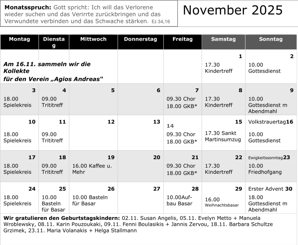 Wetter voraussichtlich am 15.11.2025 statt.Auch das Krippenspiel zu Weihnachten wird nicht fehlen.Ich freue mich